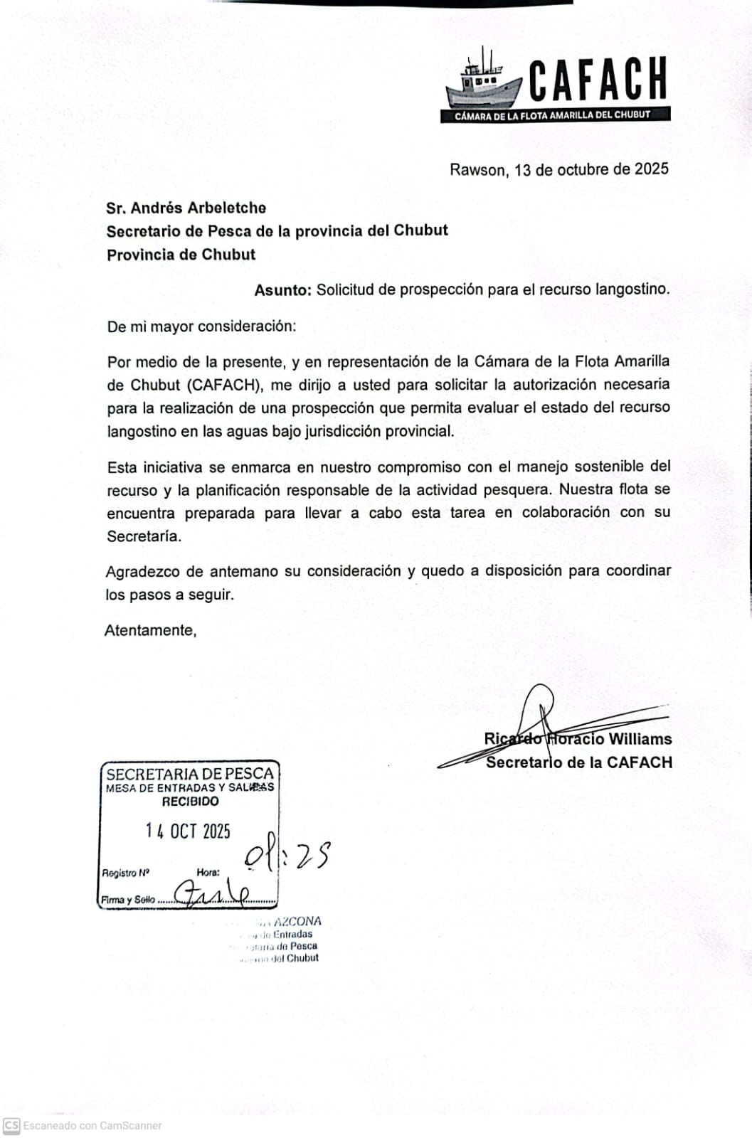 La Cámara de la Flota Amarilla (CAFACH) había elevado días atrás un pedido formal para iniciar la prospección del langostino en aguas provinciales, paso previo a la apertura de la zafra. Sin embargo, la Secretaría de Pesca rechazó la solicitud mediante la Nota N° 678/25, firmada por el secretario Andrés Arbeletche, quien argumentó que no habrá actividad hasta que todas las paritarias estén cerradas y homologadas.