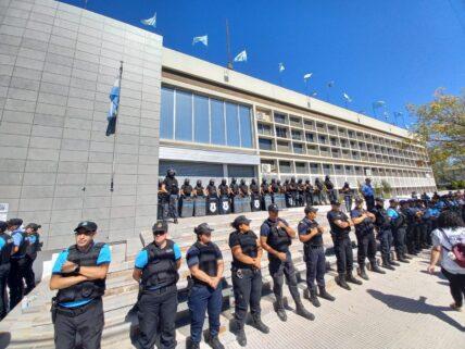 En las dos jornadas de la medida de fuerza quedó en evidencia la aplicación de la política de Patricia Bullrich en manos de Ignacio Torres en la provincia. El despliegue de la fuerza pública en Ministerio de Educación, frente a una marcha multitudinaria el día lunes 24, colocó en discusión el uso del presupuesto y para ello y la rápida organización para hacer pasar el ajuste, en desmedro de resolver rápidamente el conflicto salarial ofreciendo montos que saque a la docencia por debajo de la canasta básica patagónica, valuada en $1.613.606 (por ATE Indec) y el salario de un ingresante no supera actualmente los $600.000. Esta situación ha sido denunciada y expuesta públicamente en la Legislatura provincial por Santiago Vasconcelos, docente y diputado provincial del PO-FITU.