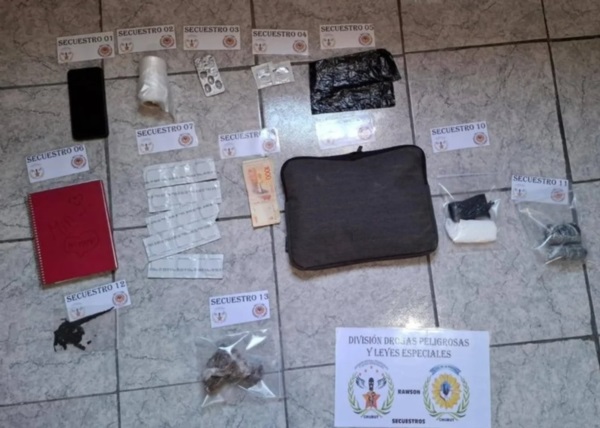 Se allanaron celdas y casas en Neuquén y Trelew. Se hallaron 478 pastillas de psicofármacos, droga, efectivo, celulares, preservativos con sello del Ministerio de Salud con restos de marihuana, balanzas, nylon para armar “caramelos” y cuadernos con anotaciones.