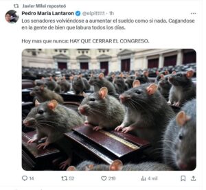 Javier Milei trató de ratas a los senadores que se aumentaron el sueldo.