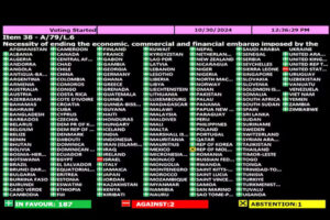 De la misma manera que Cuba consigue año a año un respaldo contudenten de la ONU para poner fin al bloqueo, la Argentina suele consiguir el pronunciamiento del Comité de Descolonización para que Gran Bretaña reconozca la soberanía argetina y abre un mesa de diálogo. Habrá que ver si luego de esta jugada de Milei lo seguirá haciendo.