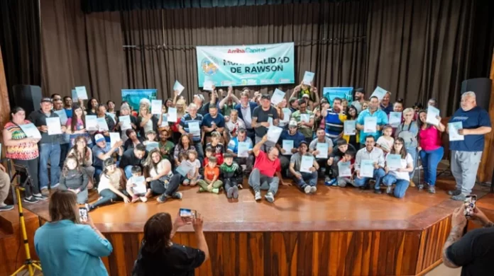 El acto se desarrolló este martes por la tarde. El intendente de Rawson, Damián Biss, realizó la entrega protocolaria de adjudicaciones a vecinos de la Parcela 52, conocida como Ex-IAC de Rawson.